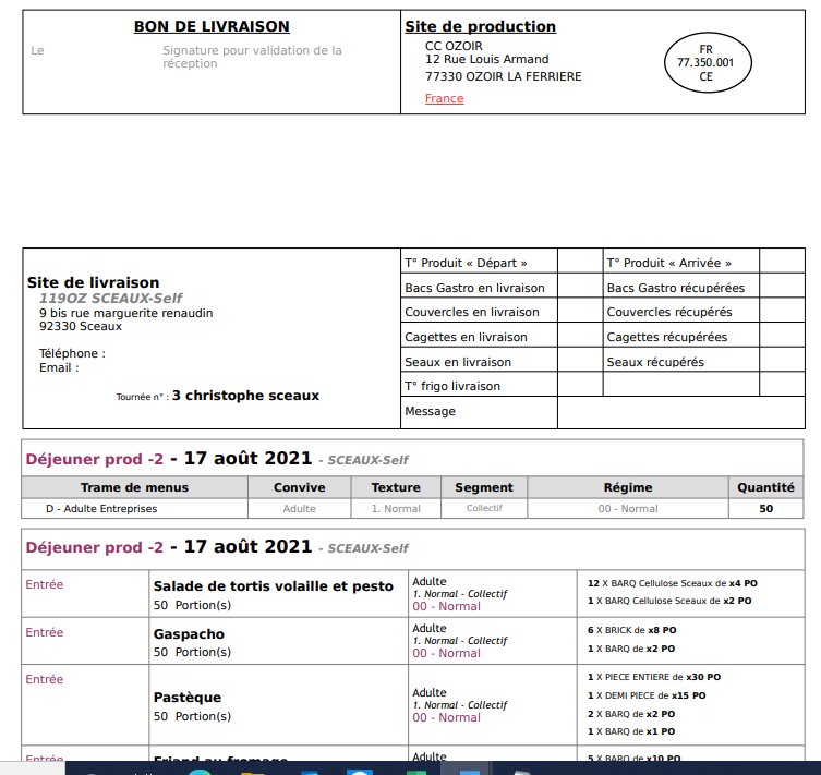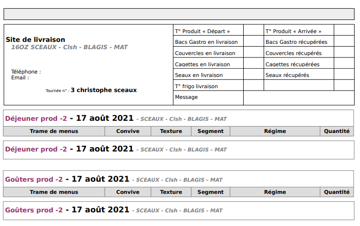 Le fichier obtenu contiendra les bons de livraisons des sites avec un calendrier ouverts uniquement ordonnés par tournée. Ex ci-dessous :