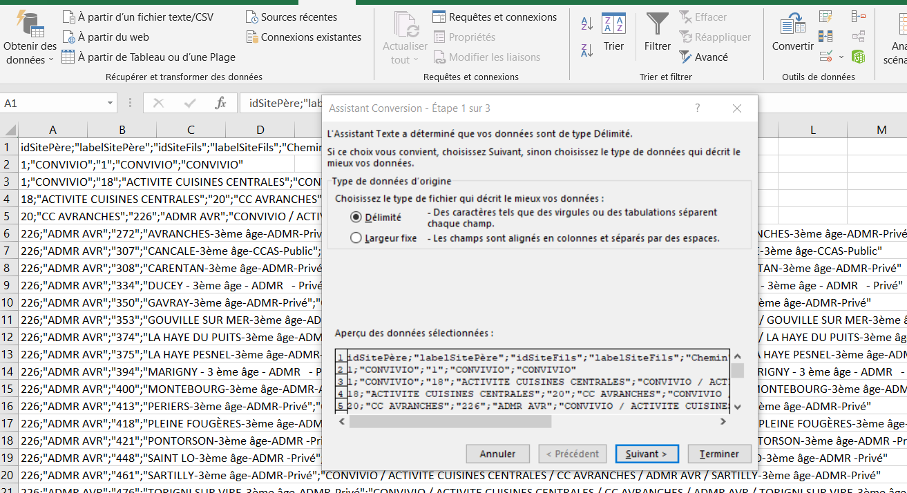 Le problème des accents à disparu mais toutes les informations sont concaténées dans la première colonne.