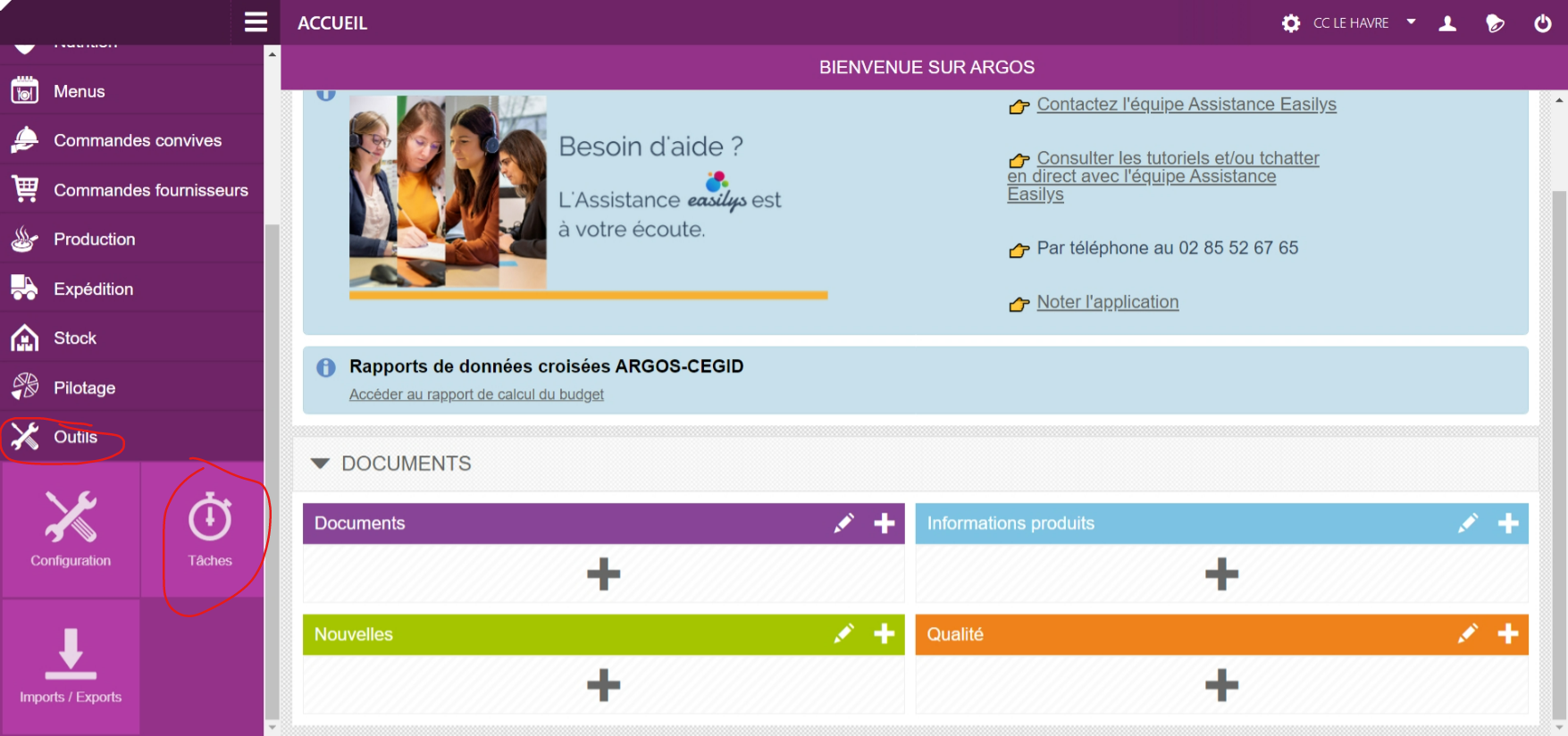L’utilisateur doit avoir le droit d’accéder à la page taches de l’onglet outil (impossible pour un chef de cuisine, un responsable de production, responsable logistique).