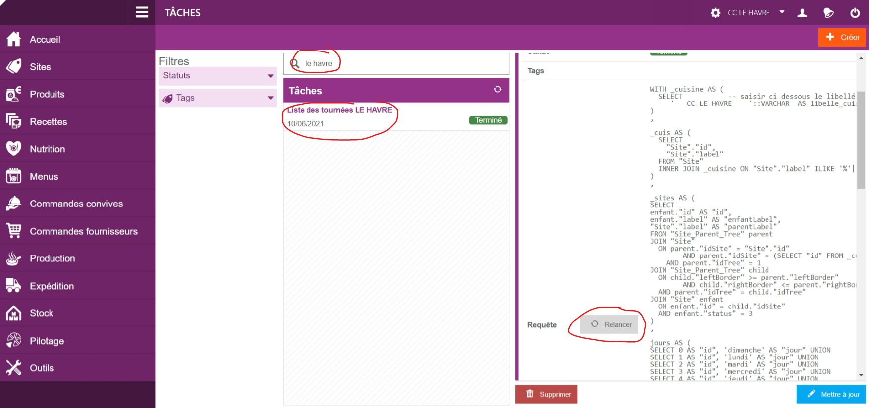 Chercher la tache Lister des tournées LE HAVRE, cliquer dessus.