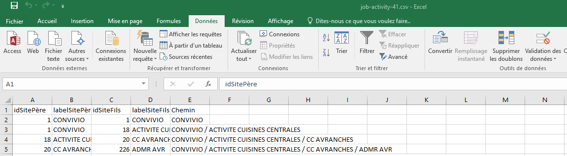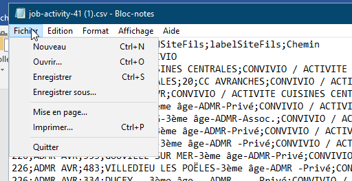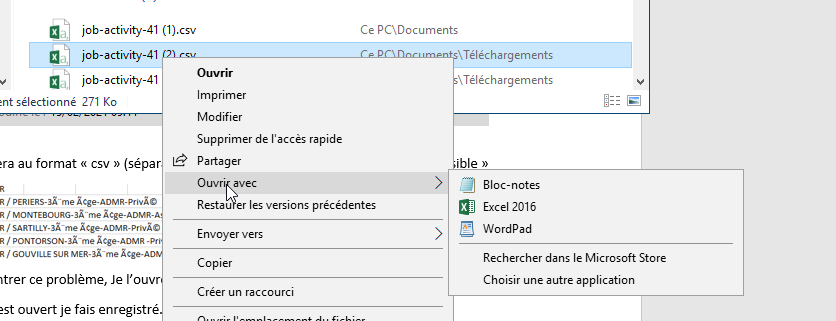 - J’ouvre le dossier Téléchargement, je recherche mon doc qui s’appelle « job-activity-41.csv »