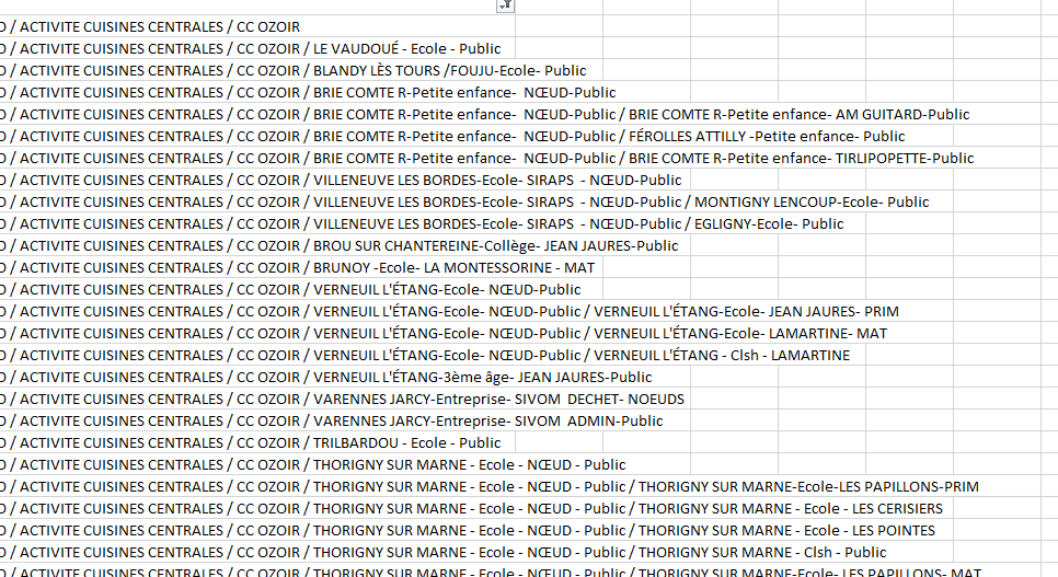 - j’élargis la colonne E « Chemin » et clique sur la case de filtre