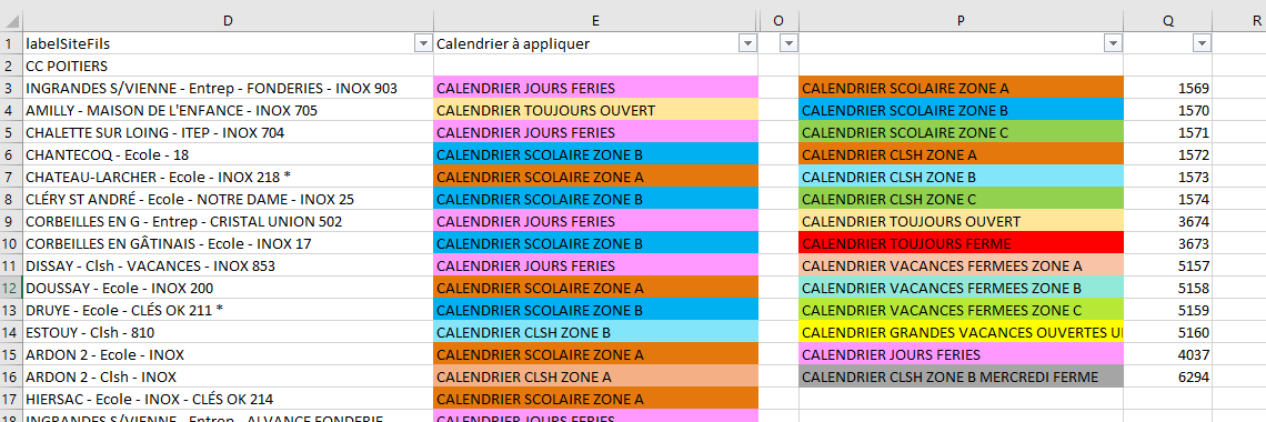 - Il ne me reste plus qu’à mettre un marquage en face de chaque client selon sa zone scolaire, à noter que l’on ne met pas de calendrier sur les nœuds et sur certains clients comme les entreprises ou le portage (la liste des calendriers est disponible dans le fichier en bas de cette documentation)