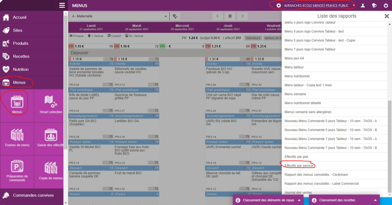 Se connecter à ARGOS sur le site d’intérêt dans menus -> menus -> rapports -> Effectifs par service.