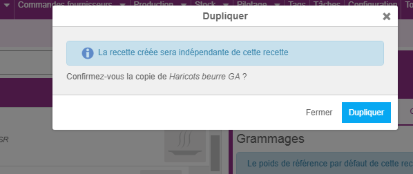 *je clique sur le symbole dupliquer, une fenêtre s’ouvre pour demander confirmation