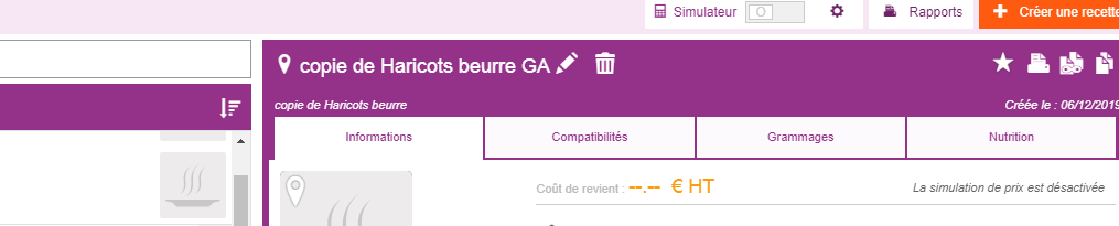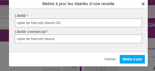 *la recette dupliquée apparait, je commence par renommer ma nouvelle recette en cliquant sur le cayon