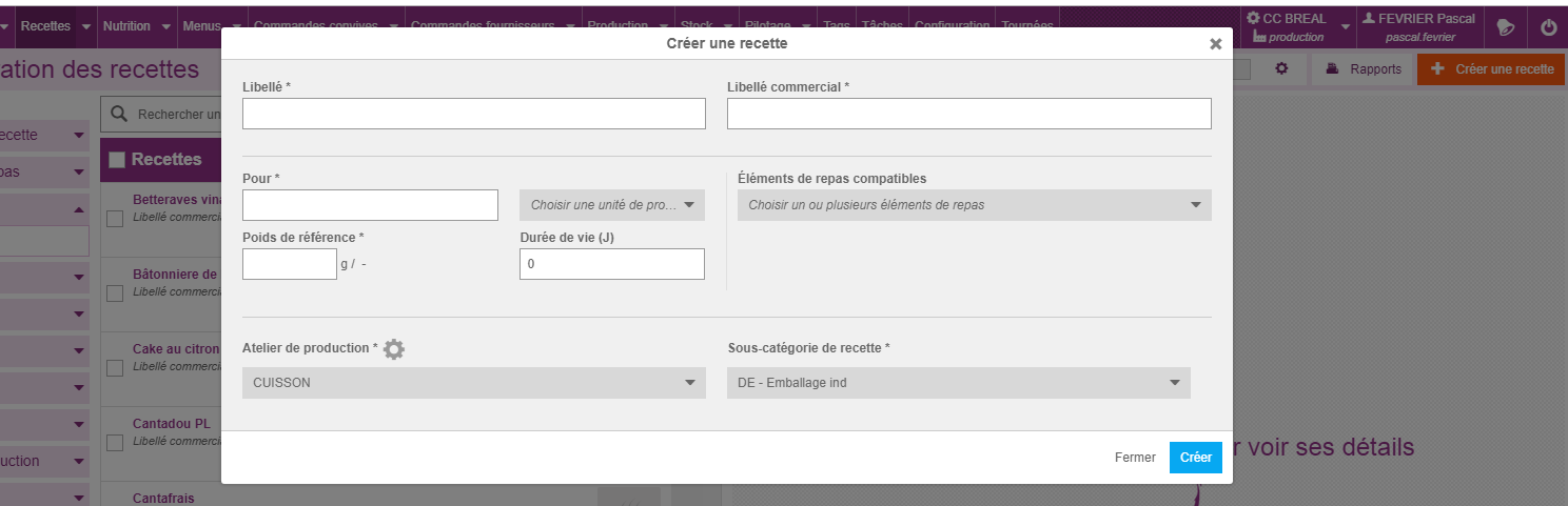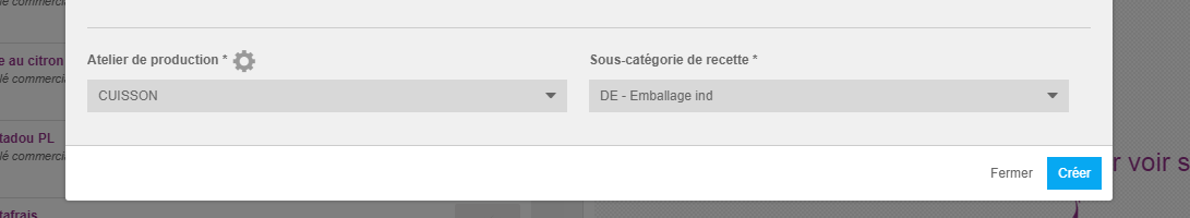 *je choisis l’atelier de production (cuisson pâtisserie, prep froide etc)