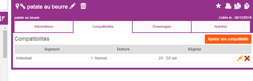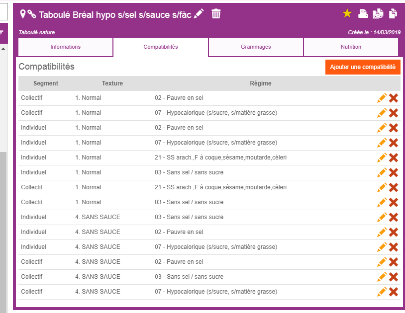 *Ma déclinaison apparait avec le symbole déclinée, je continu en cliquant sur « ajouter une compatibilité » pour créer la déclinaison en collectif ou pour associer un autre régime.