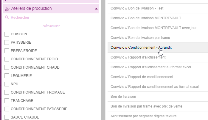 *nous allons sélectionner uniquement des ateliers de conditionnement, chaud, froid, fromage, patisserie.