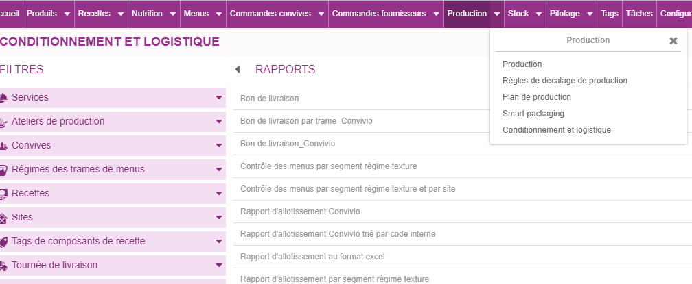 *j’ouvre la liste déroulante dans l’onglet production et choisi « conditionnement et logistique »