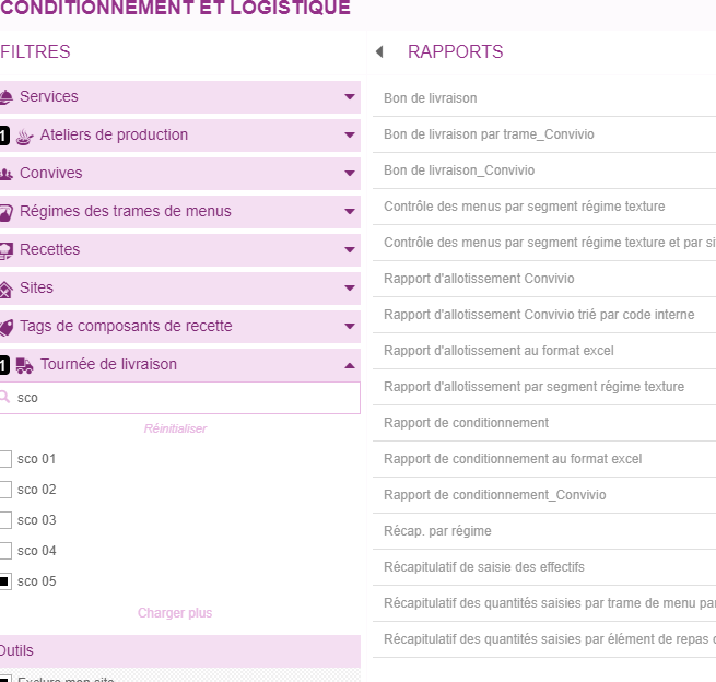 *j’ai la possibilité également d’appliquer un filtre supplémentaire, par tounée ou par recette si je souhaite faire l’allotissement d’un produit en particulier