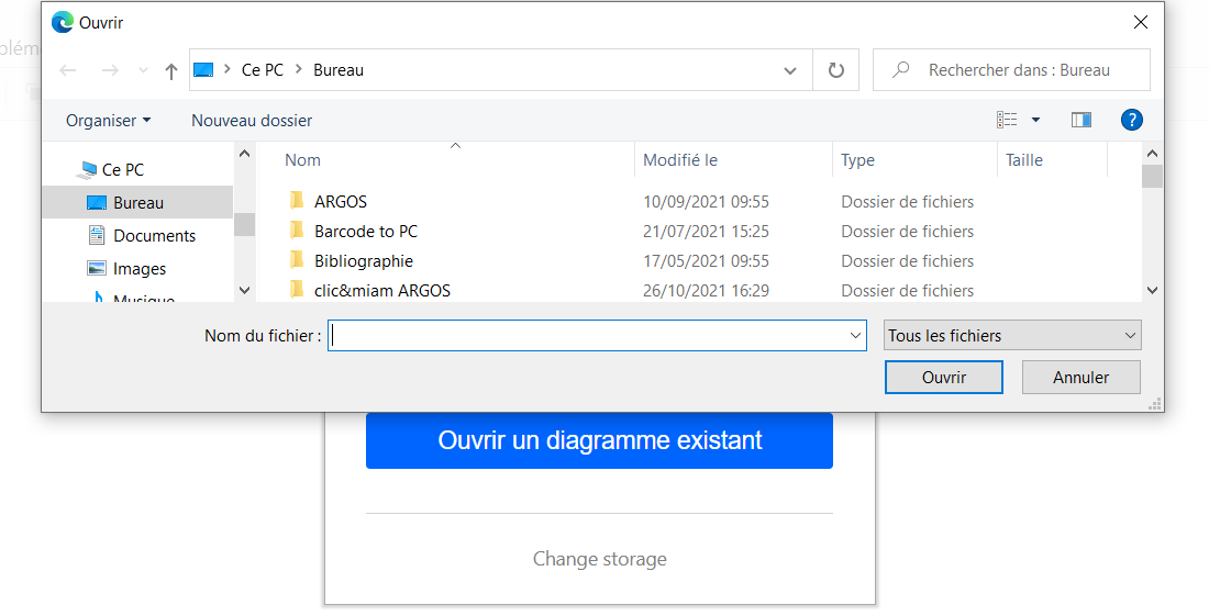 On me demande à nouveau de créer un nouveau diagramme ou d’en ouvrir un existant (mais en français). Cette fois ouvrons le fichier :