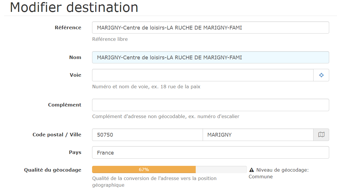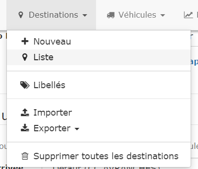 La liste des destinations permet ensuite rechercher le site d’intérêt (ou d’en créer de nouveaux) :