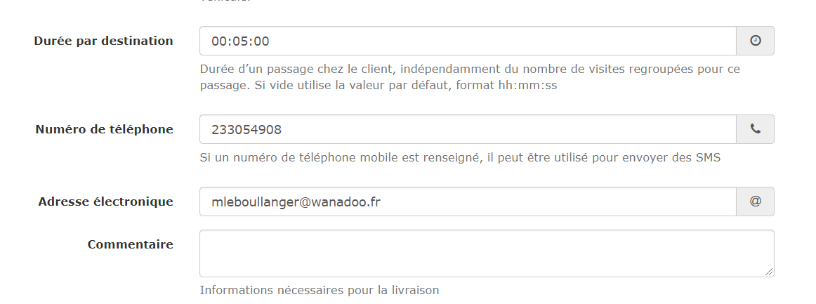 - Un commentaire : par exemple le code d’accès des alarmes ou une particularité de livraison.