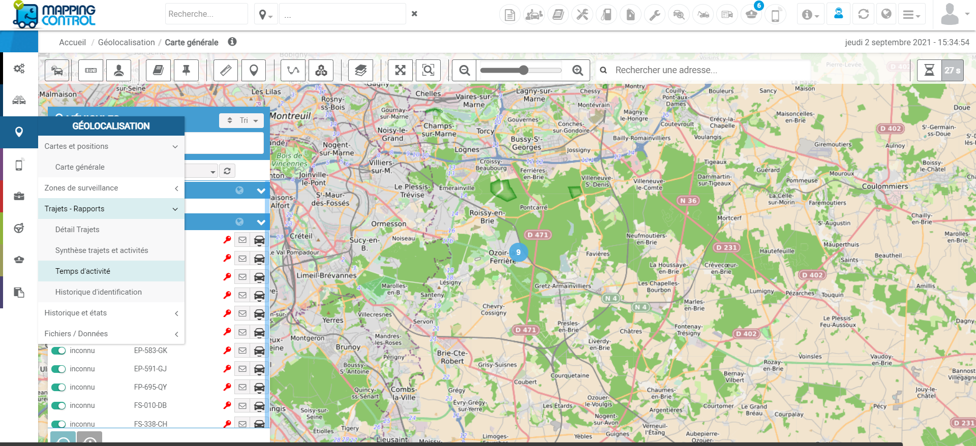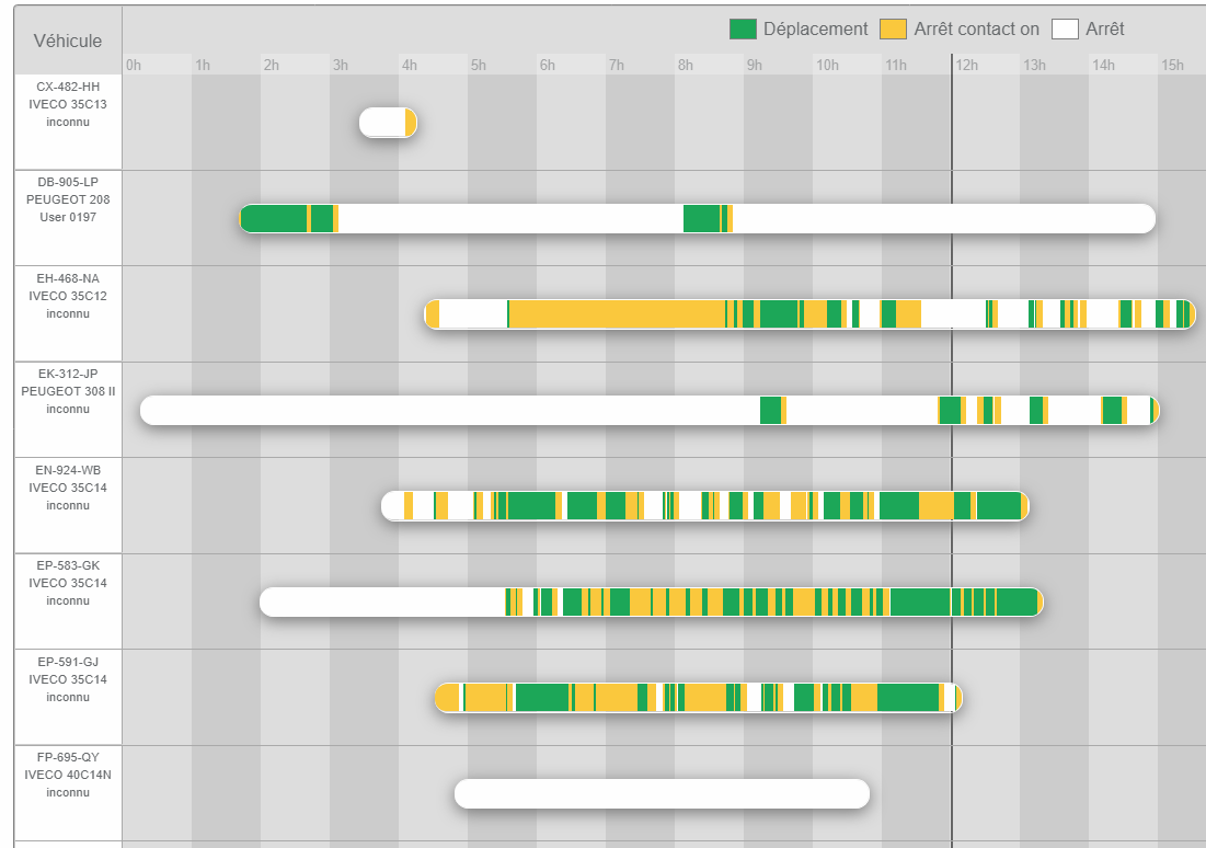 Vous pourrez alors visualiser les temps d’activité par véhicules :