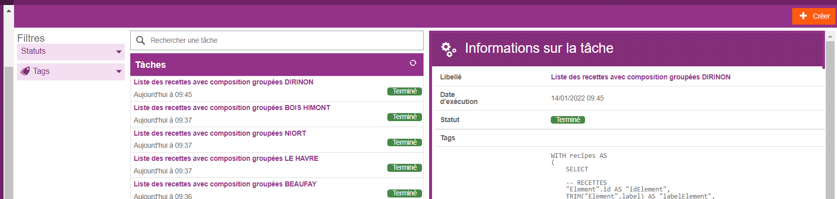 La tache va passer au statut en cours le temps de mettre à jour les informations (mois d’une seconde calcul). Pensez à réactualiser pour voir la tache Terminée :
