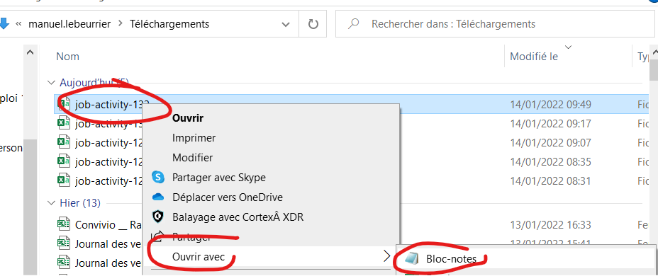Aller dans les téléchargements, clic droit ouvrir le fichier avec bloc-notes :
