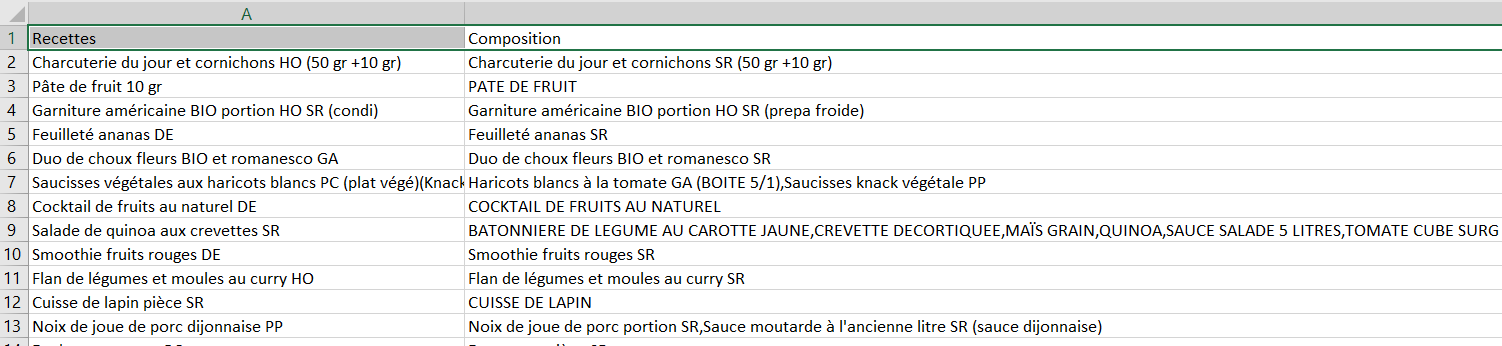 I – Mettre à jour les compositions des recettes