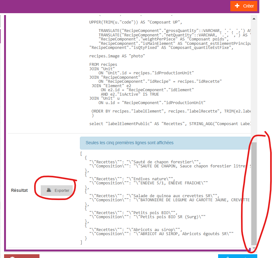 II – Exporter les compositions des recettes