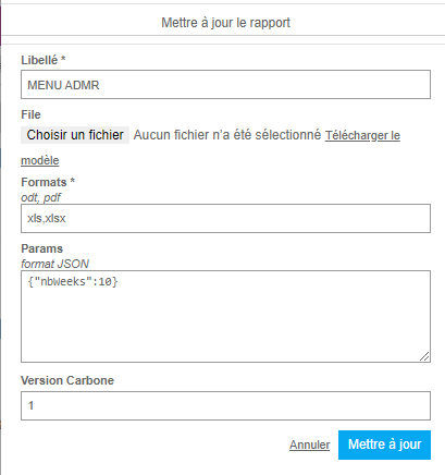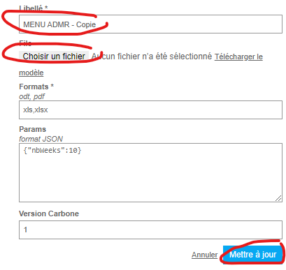 Pour récupérer le modèle d’un rapport il suffit de cliquer sur le crayon du rapport souhaité puis de télécharger le modèle :