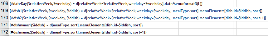Note aux audacieux : pour modifier le contenu d’un fichier encore faut-il savoir quelles informations expose l’API concernée ? Pour cela exporter le rapport souhaité au format JSON (à ajouter dans les paramètres de format du rapport lors de la modification). Ensuite il faut que la structure de données correspondent pour modifier correctement les variables de fin de page et les boucles de récupération de données :