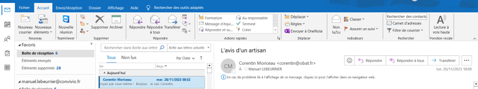 Après un court temps de traitement je vais voir ce mail arriver dans ma boite mail :