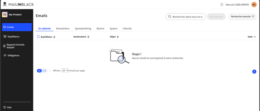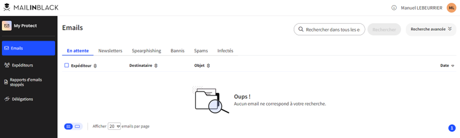 - En attente : Le mail est bloqué, car la demande d’authentification n’a pas encore été remplie par l’expéditeur.