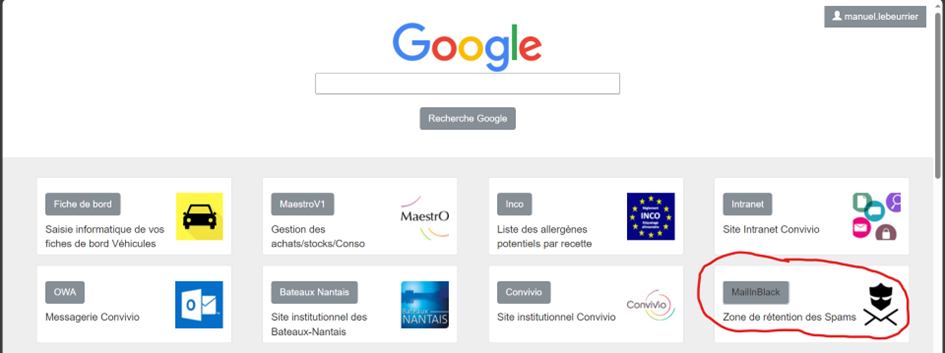 A CONVIVIO le logiciel utilisé pour la rétention des SPAMs et éviter ainsi qu’il se retrouve automatiquement sur votre boite mail est MailInBlack. Ouvrez Microsoft Edge et dans le Dashboard vous devrez trouver ce logiciel :