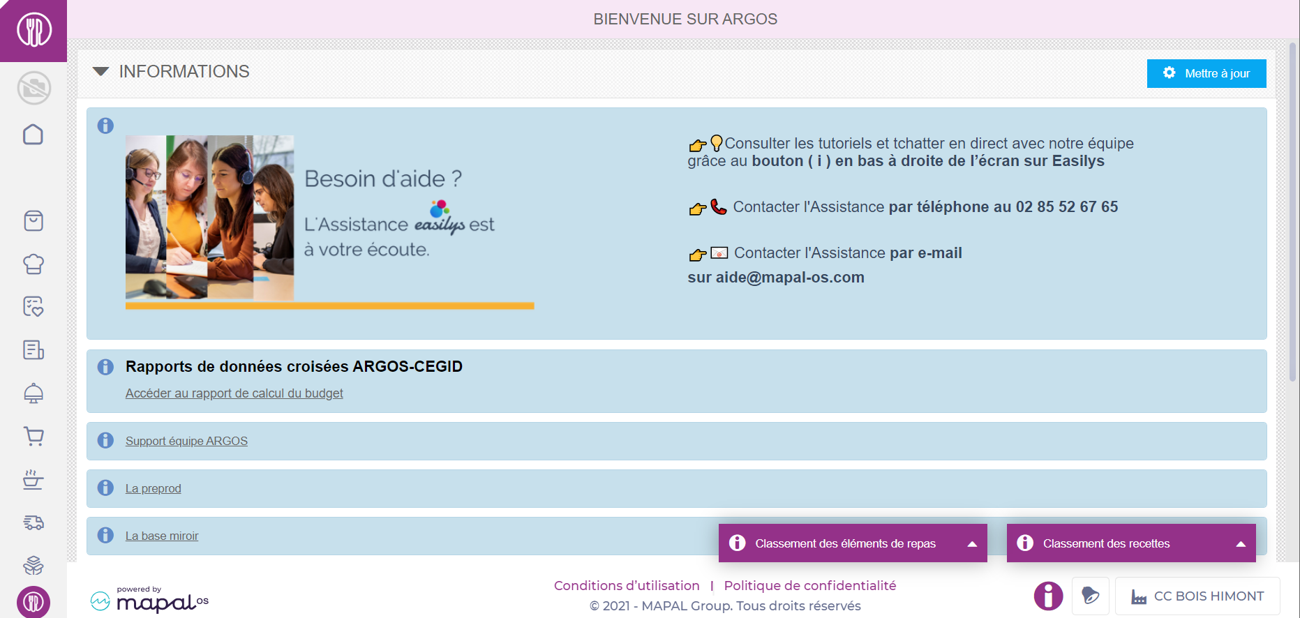 Pour vous connecter à ces 2 bases il suffit d'aller sur la page d'accueil d'une CC ou d'un site de livraison (pas sur Activité cuisine centrale ni CONVIVIO). Et de renseigner les mêmes identifiants et mot de passe que sur la base de production.