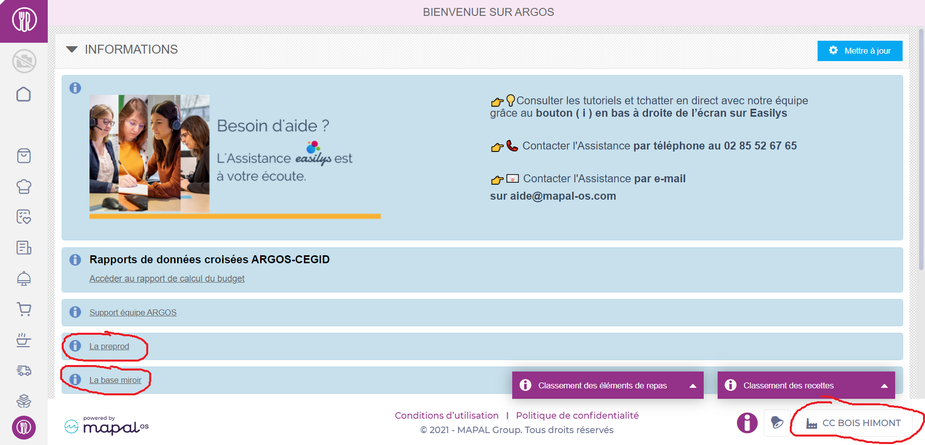 La base de production d'ARGOS est celle avec l'environnement violet que vous utilisez tous les jours :