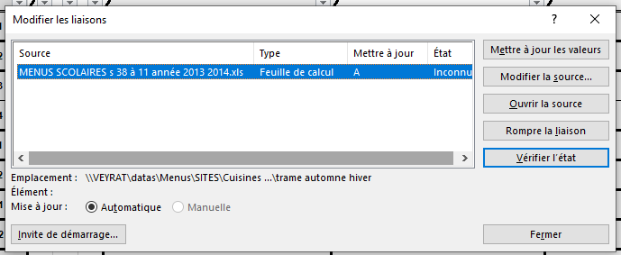 Trop de fichier contiennent aujourd'hui des liaisons vers des fichiers de 2014 et pour le moment personne n'a réussi à m'expliquer pourquoi alors supprimez ces liaisons :