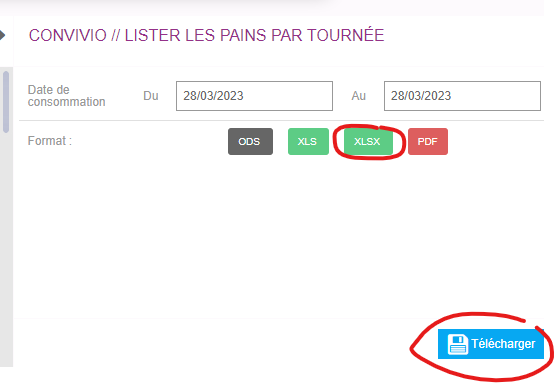 Sélectionner la date d'intérêt puis XLSX et Télécharger :