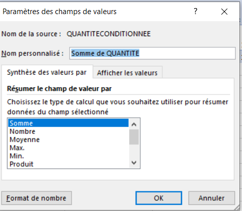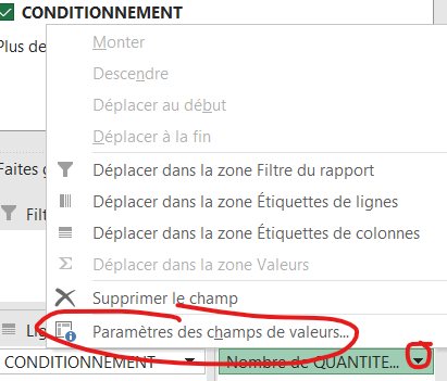 Si ce n'est pas le cas faites un clic gauche sur la flèche -> paramètres des champs de valeurs :