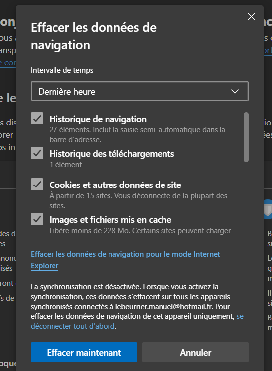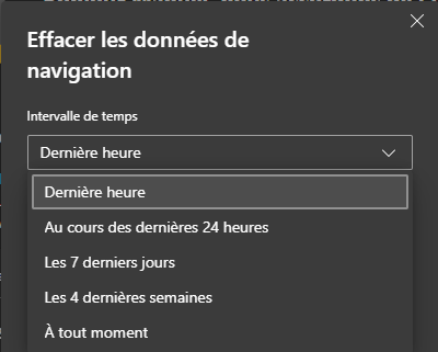 Si cela fait longtemps que vous n'avez pas vider le cache (ou fermé votre navigateur ou éteint votre ordinateur) n'hésitez pas à remplacer "Dernière heure" par l'option