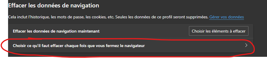 Vous pouvez effacer les données de navigation maintenant et rejoindre le point précédent mais ce qui va nous intéressez c'est de paramétrer le vidage automatique du cache à chaque fois que vous fermez votre navigateur :