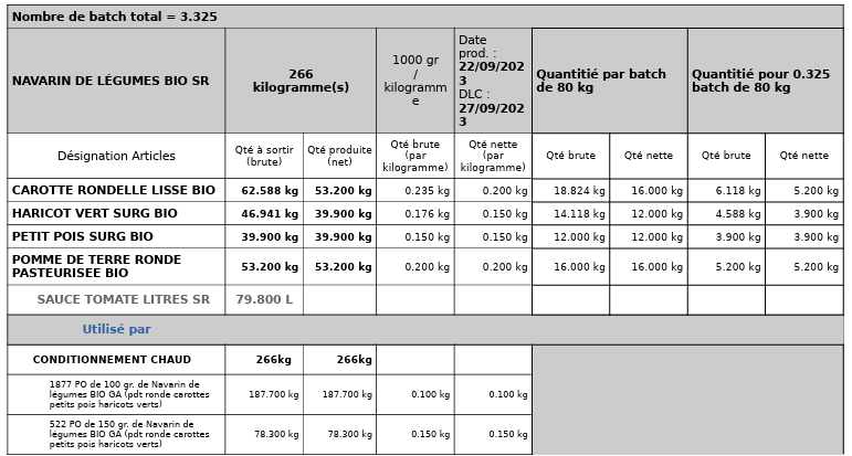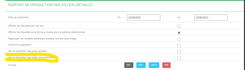 Ainsi dans le rapport de production par atelier détaillé ceux-ci apparaitront avec le détail par ingrédient pour les batchs entiers et pour les appoints.