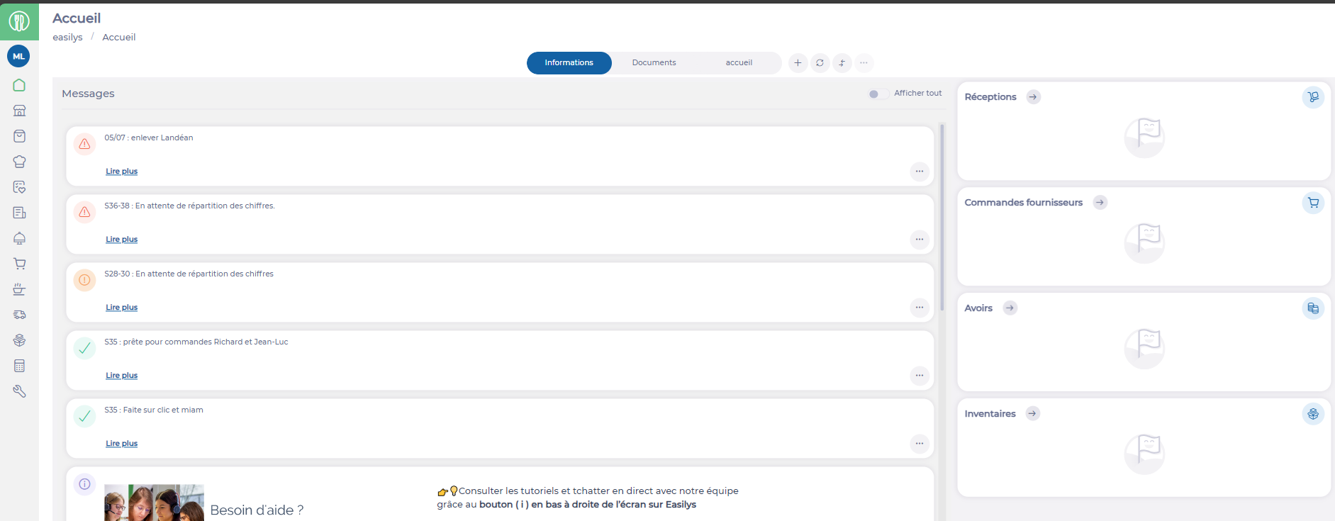 Mise à jour de l'affichage de l'ordre des messages par type et date, et des documents par date descendante. De plus il est possible de descendre jusqu'en bas.