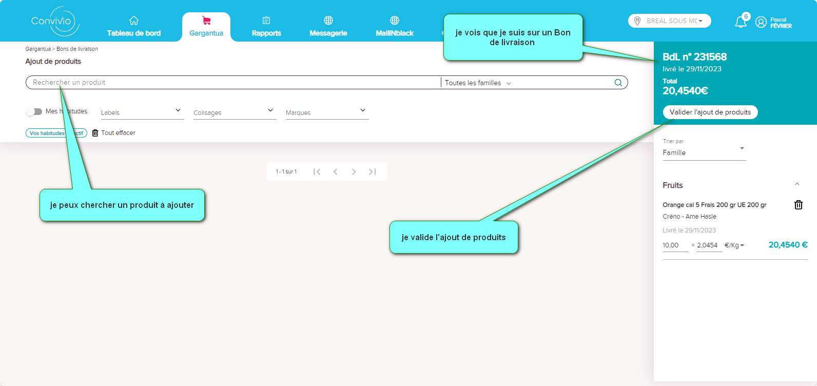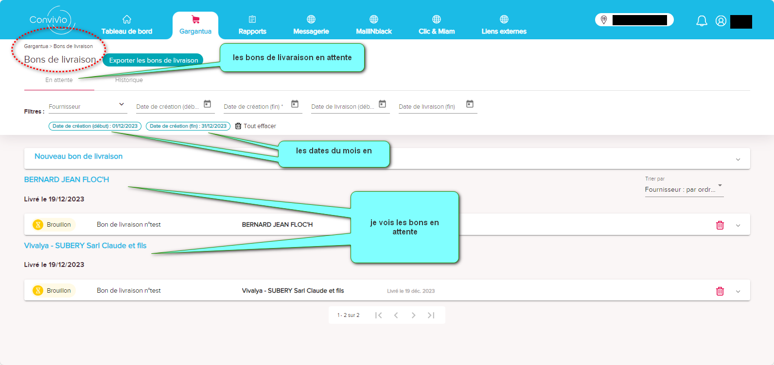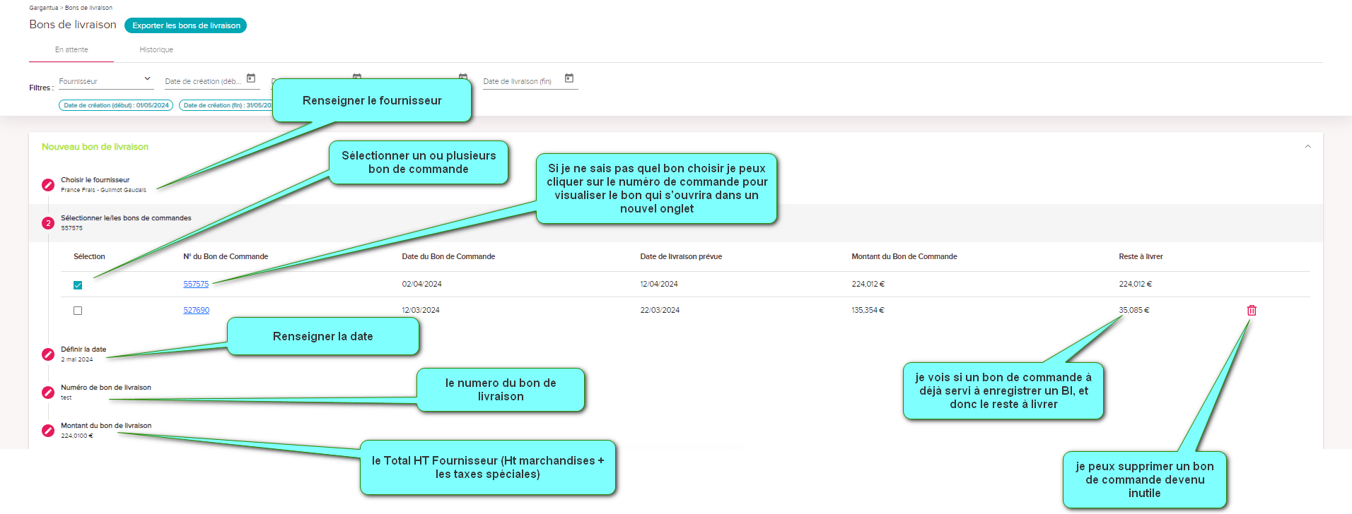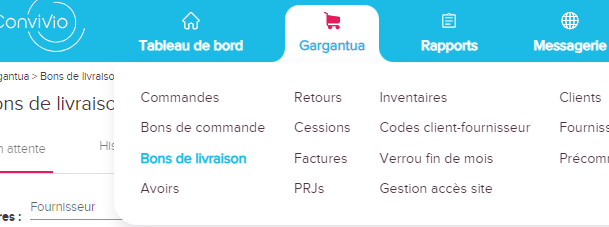 Dans l'onglet Gargantua, je clique sur bon de livraison