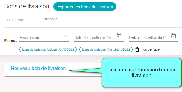 je clique sur nouveau bon de livraison