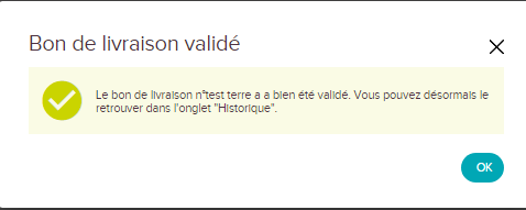 Le bon de livraison est validé, il sera visible dans "Historique"