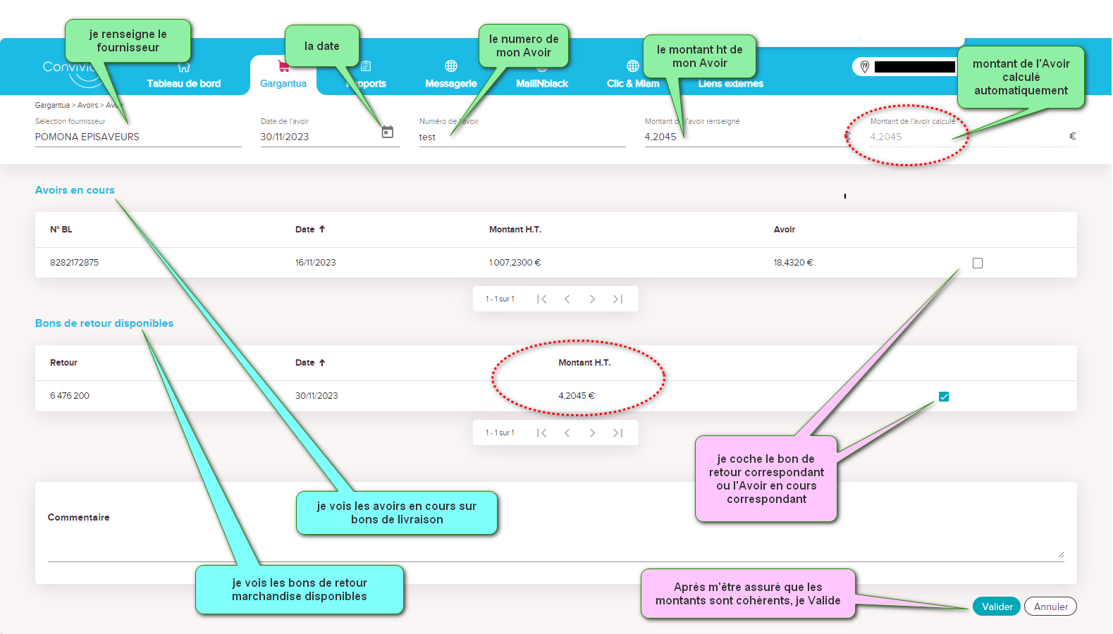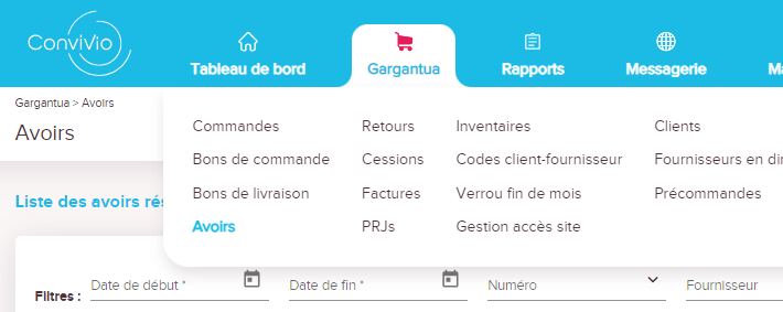 Dans Gargantua, je clique sur l'onglet Avoirs
