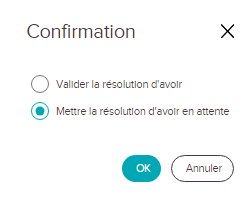 la fenêtre de confirmation s'ouvre, je peux soit valider ou mettre la résolution d'avoir en attente