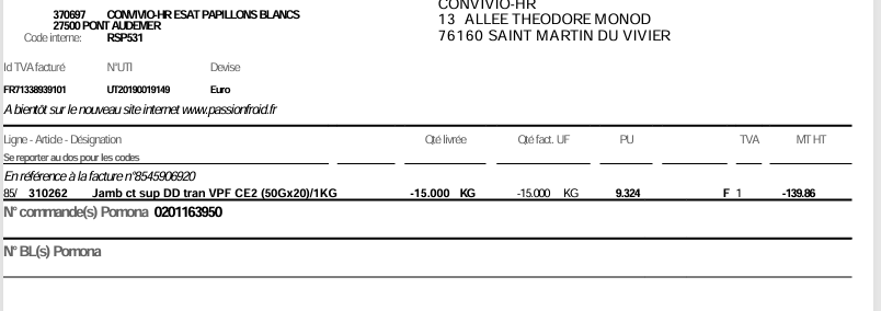 Passion a envoyer un Avoir de 139.86, ils ont remboursé la ligne entière
