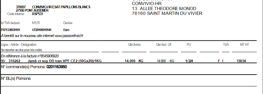 4 - valider la facture avec le bl fictif de 130.54