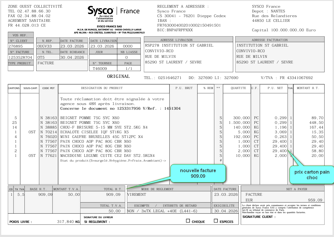 Puis ils ont fait une nouvelle facture de 130.54 (rejetée par le chef)