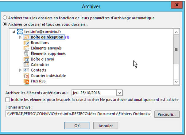 Pour lancer l’archivage de la boîte de réception et des sous-dossiers, il faut :