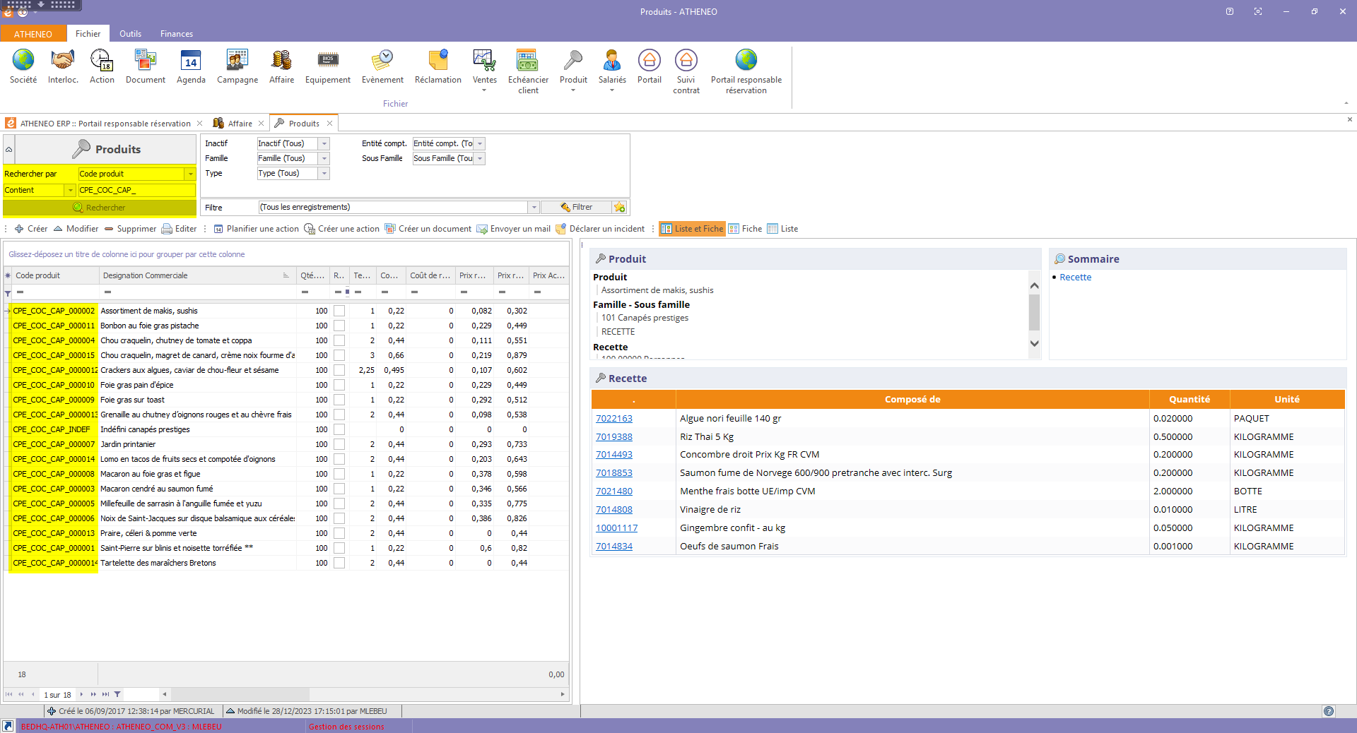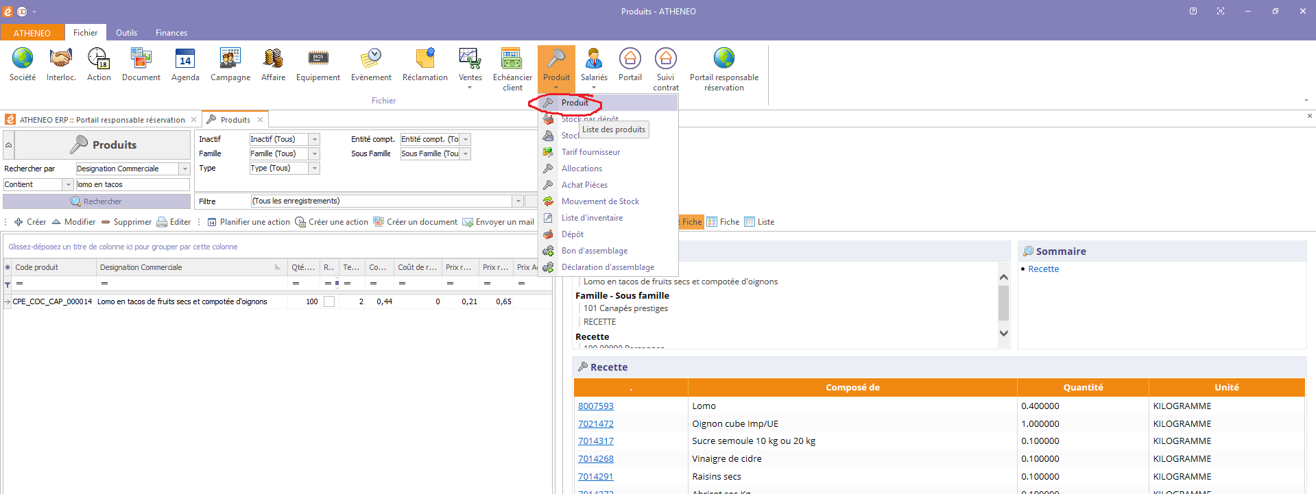 Dans Atheneo tout est produits. Certains produits ne sont pas assemblés (produits fournisseurs) alors que d'autre le sont (recettes).
