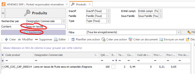 Si la recette existe vous aurez la possibilité de la modifier en double cliquant dessus.