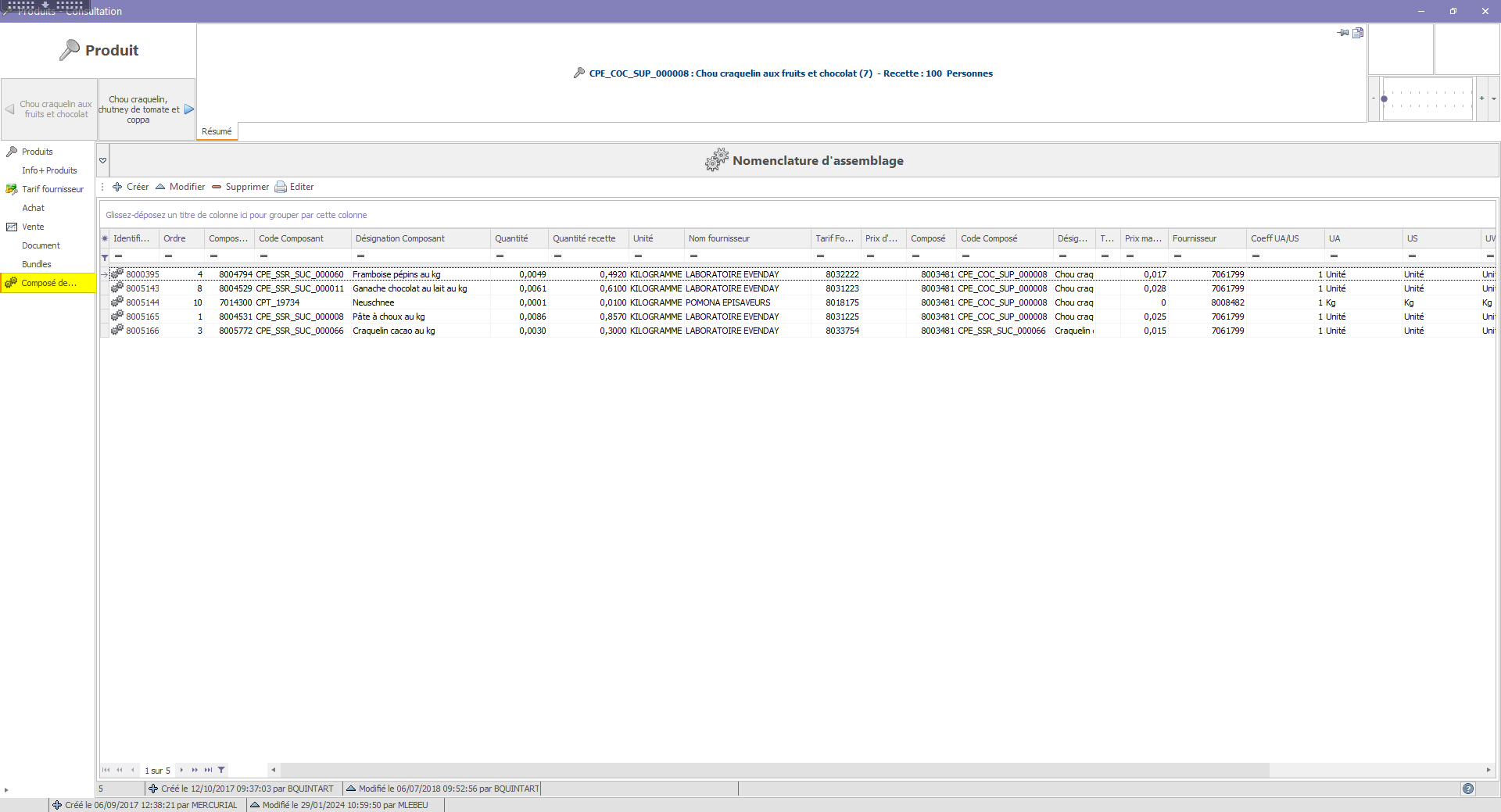 - La quantité recette : quantité du composant à mettre pour réalisé à recette de 100 pièces.