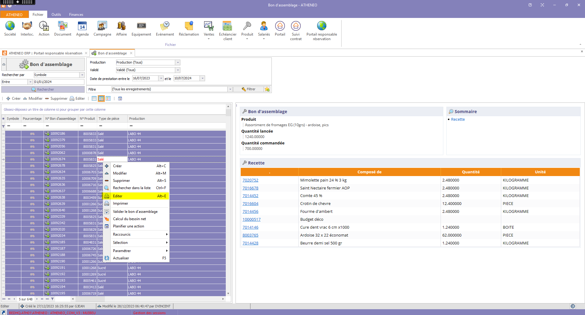 En faisant un clic droit sur la liste il est possible d'éditer tous les bons d'assemblage sélectionnés :
